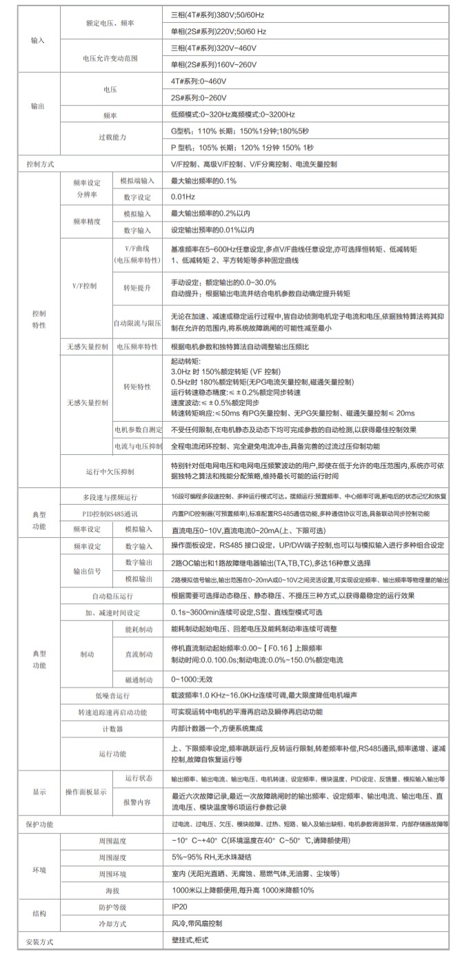 全方位的過流、過壓、過載保護(hù)及失速防止功能;