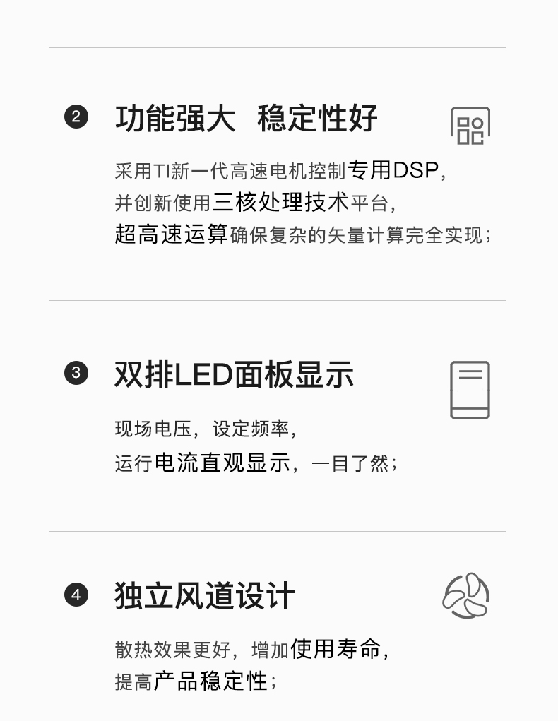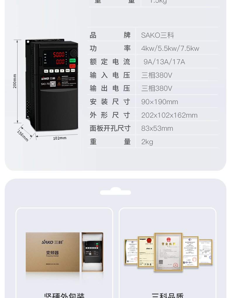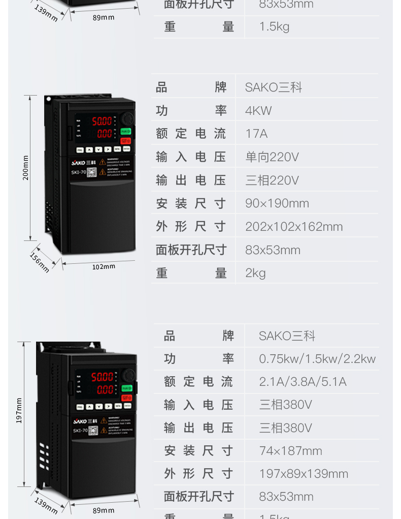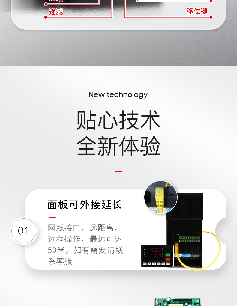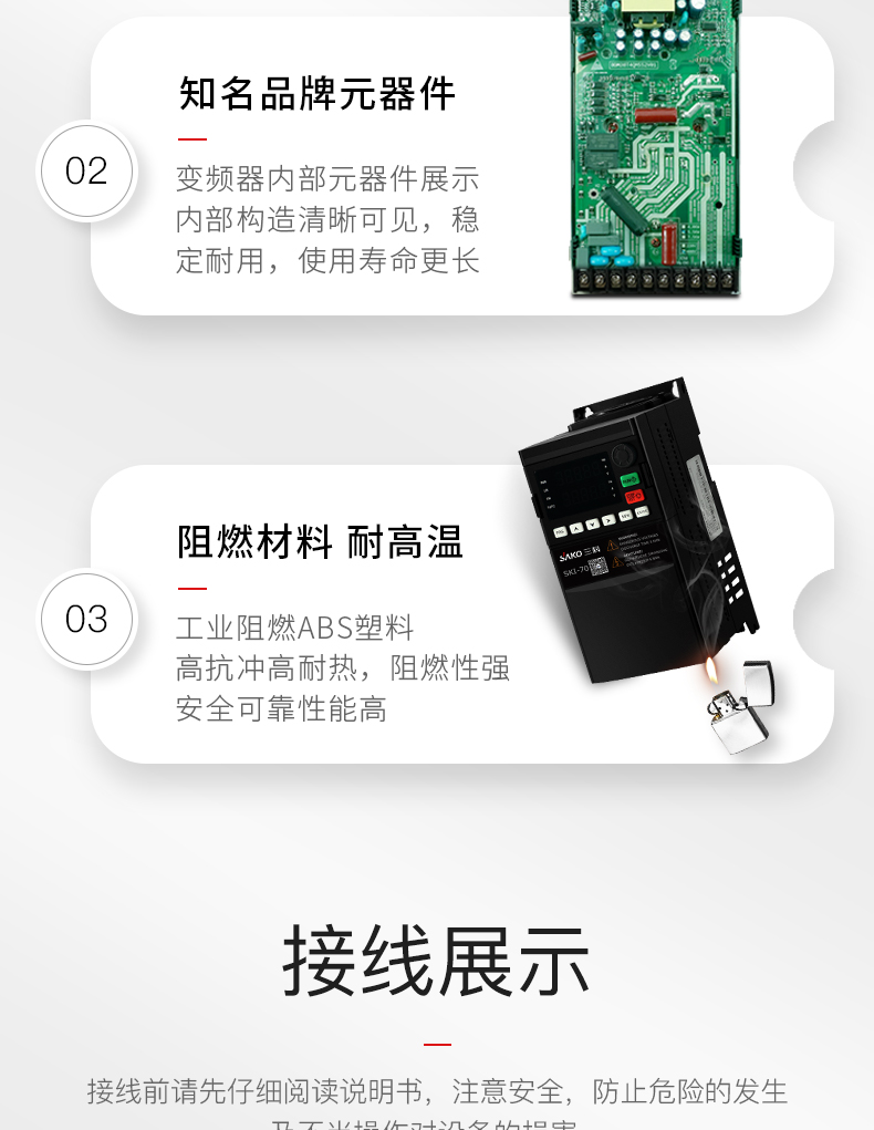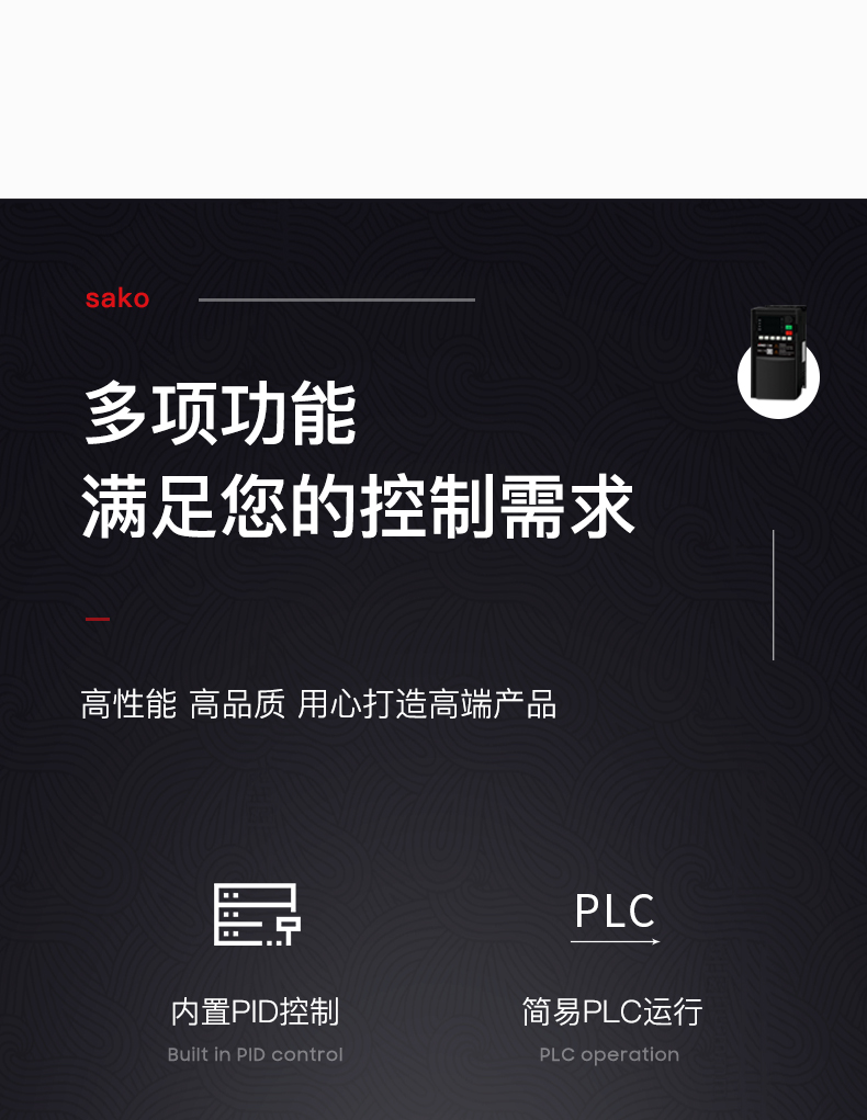 SKII70變頻器新品上市,處處是升級(jí),產(chǎn)品身材更小,功能更強(qiáng)性能穩(wěn)定,雙排LED顯示更直觀,獨(dú)立風(fēng)道設(shè)計(jì)產(chǎn)品性能更穩(wěn)定??赏饨用姘?,實(shí)現(xiàn)遠(yuǎn)程控制,產(chǎn)品外殼采用阻燃材料,耐高溫。