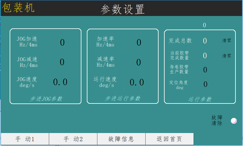 控制傳送帶、氣動(dòng)裝置,自動(dòng)包裝技術(shù),自動(dòng)/手動(dòng)切換、速度/速率調(diào)節(jié)、故障狀態(tài)、故障原因顯示、報(bào)警歷史記錄、過(guò)載保護(hù)、過(guò)熱保護(hù)、過(guò)欠電壓保護(hù)、防誤操作保護(hù)、歷史報(bào)警記錄、緊急停止、缺相保護(hù)、電流監(jiān)控、各元件工作狀態(tài)查看、權(quán)限管理、操作權(quán)限管理,生產(chǎn)數(shù)據(jù)統(tǒng)計(jì)、清零,后臺(tái)包裝參數(shù)設(shè)置,遠(yuǎn)程控制系統(tǒng)、云平臺(tái)系統(tǒng)、手機(jī)短信報(bào)警提示、手機(jī)APP監(jiān)控等。
